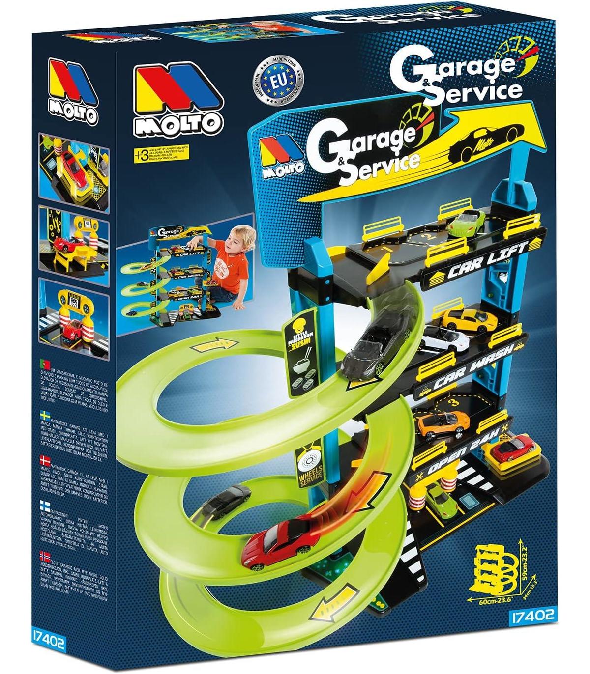 Practica tus dotes de conductor y mecánico con este fabuloso parking de juguete Molto tus peques podrán gestionar su propio parking con garaje. Sus 4 plantas y múltiples accesorios y zonas de juego ofrecen enormes posibilidades para dejar volar la imaginación y creatividad.