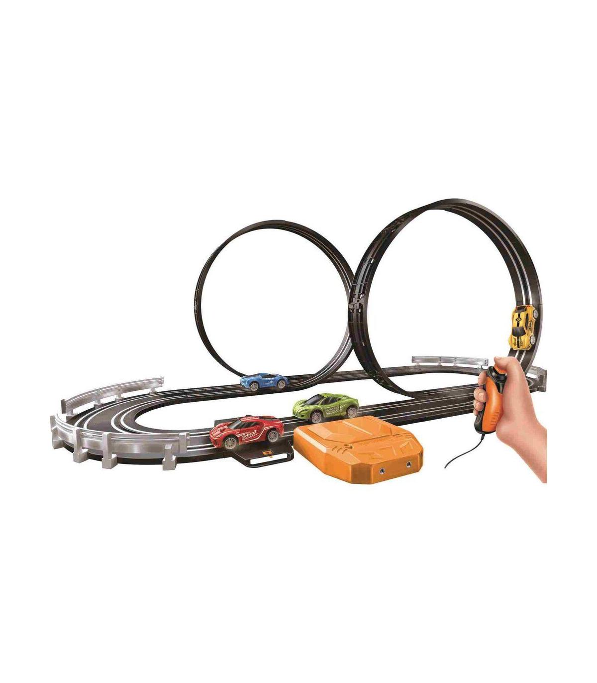 La Pista Doble Loop de la marca Motor Planet es un juguete perfecto para los niños que aman los coches de carreras y las emociones fuertes. Con sus seis vueltas, su pista de colisión, su gran potencia y sus giros increíbles, este juguete ofrece horas de diversión y emoción. La pista está hecha de plástico resistente y duradero, y tiene una longitud de 394 cm. La pista tiene dos carriles para competir, y cada carril tiene un botón que activa efectos de luz y sonido. La pista también tiene una rampa de lanzamiento que ayuda a los coches a alcanzar altas velocidades. La pista incluye cuatro vehículos de carreras a escala 1:64. Los vehículos están hechos de plástico duradero y tienen un diseño detallado y realista. Características principales: 6 vueltas Pista de colisión Conexión de pistas Gran potencia Giros increíbles Dos carriles para competir Protección anti-cortocircuitos 394 cm 4 vehículos incluidos Edad recomendada: 3 años en adelante Dimensiones: Pista: 394 cm de largo Vehículos: 10 cm de largo Instrucciones de cuidado: Limpiar con un paño húmedo. No sumergir en agua. Advertencias: No apto para niños menores de 3 años. Contiene piezas pequeñas que podrían provocar asfixia. Beneficios educativos: La Pista Doble Loop ayuda a los niños a desarrollar habilidades motoras finas, coordinación mano-ojo y pensamiento creativo. Ideas de juego: Los niños pueden usar la pista para competir con sus coches. Pueden inventar historias sobre sus aventuras de carreras. Detalles adicionales: La pista se puede conectar con otras pistas de la marca Motor Planet para crear pistas más largas y desafiantes. La pista de colisión añade emoción a las carreras. Los vehículos tienen un diseño detallado y realista. Los vehículos funcionan con pilas AA, incluidas para demostración.