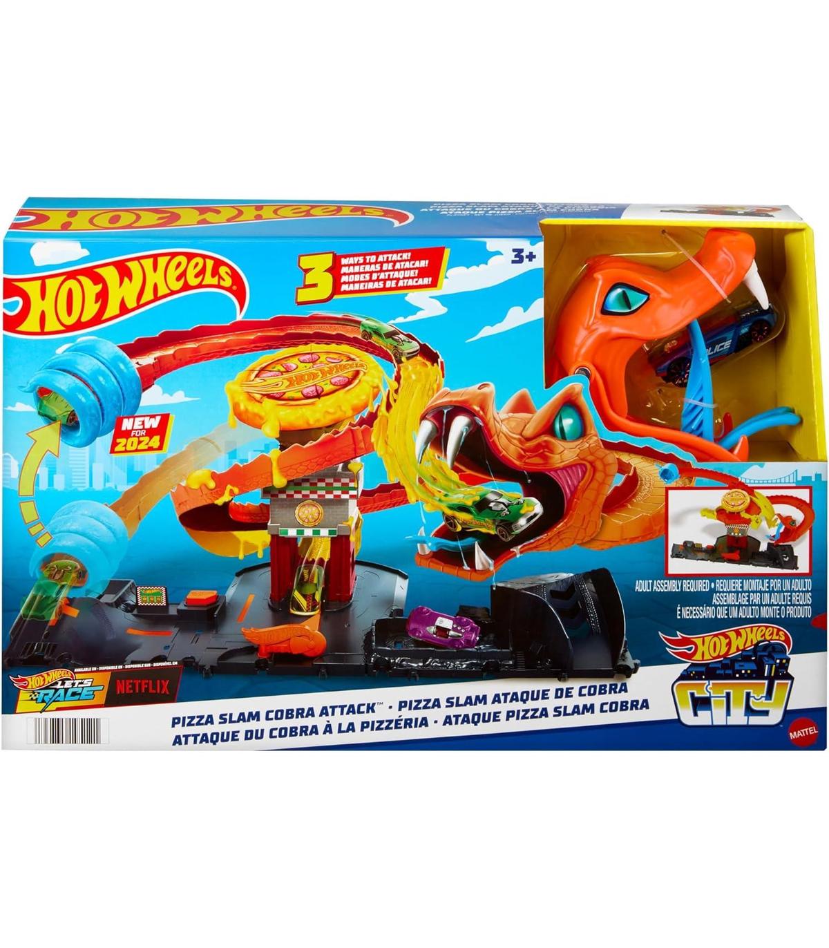 ¡Salva la pizzería de Hot Wheels City de una cobra enorme que se ha apoderado de ella!