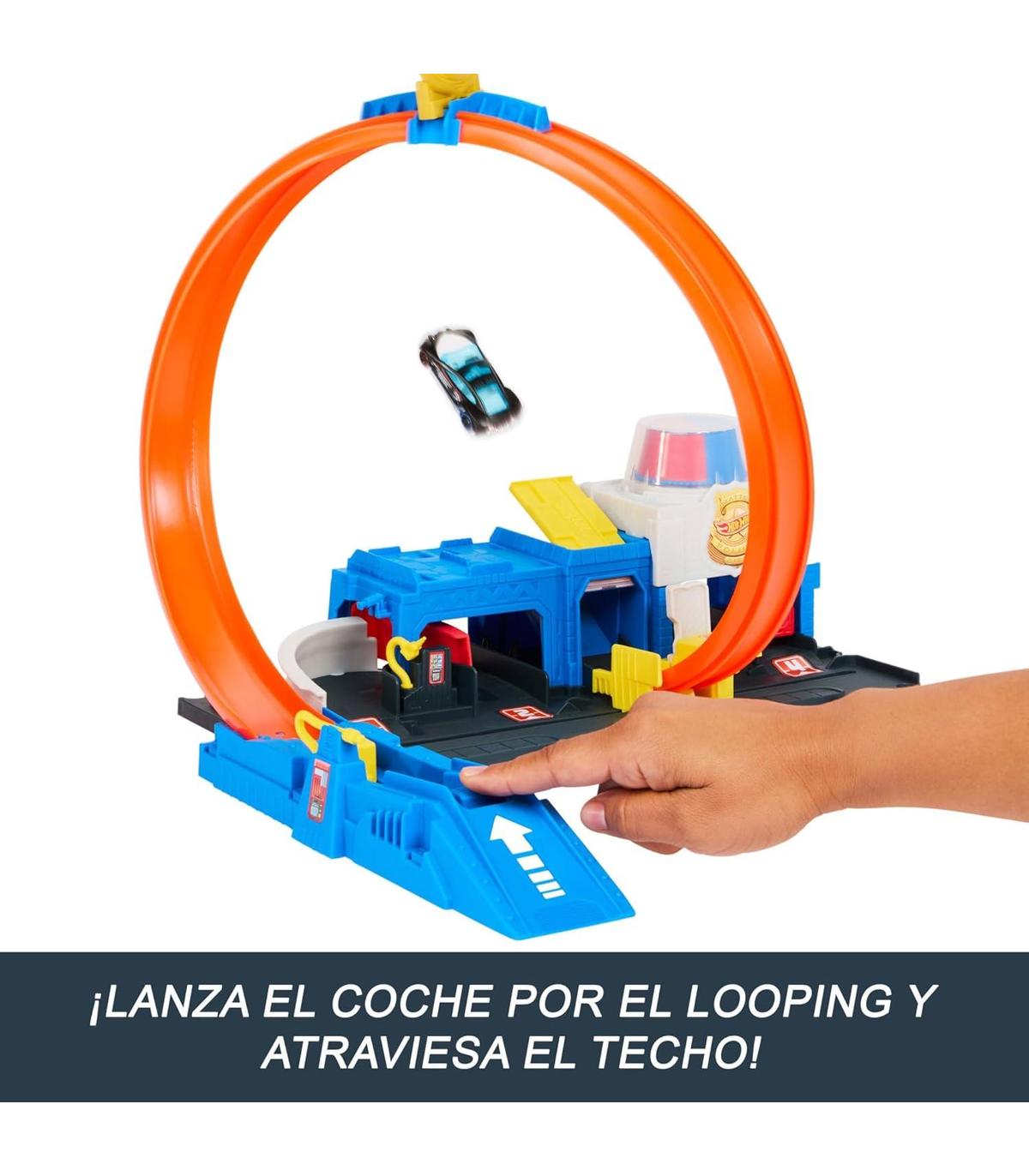 Mueve el looping regulable para elegir entre cuatro resultados diferentes en el conjunto juego Supercomisaría de policía de Hot Wheels City.