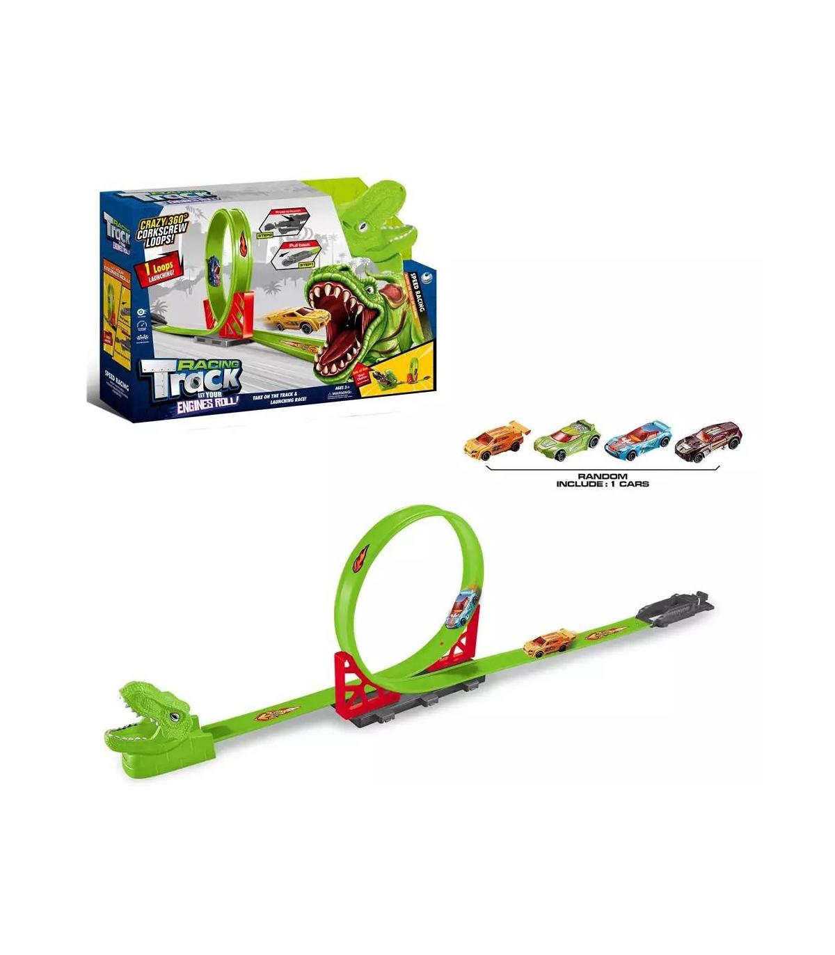 La Pista Dino Racing Track lleva la emoción de las carreras al siguiente nivel. Prepárate para un desafío lleno de acción, velocidad y adrenalina, donde los pilotos más valientes deberán superar al temible dinosaurio y atravesar un espectacular loop 360º.